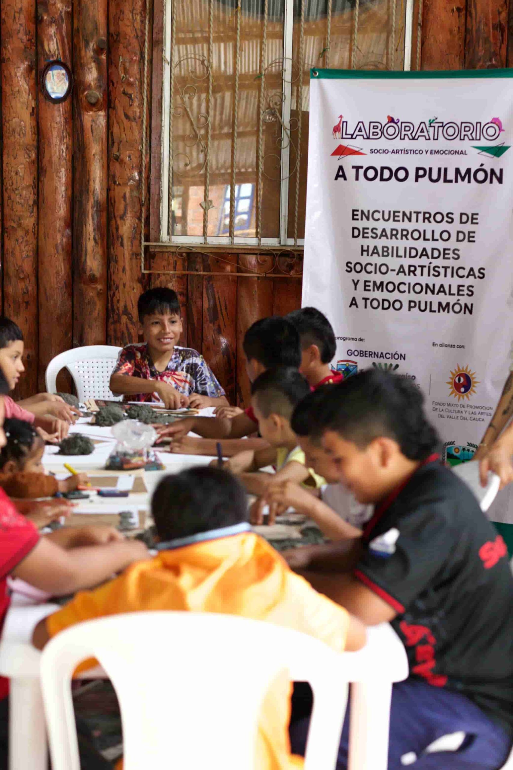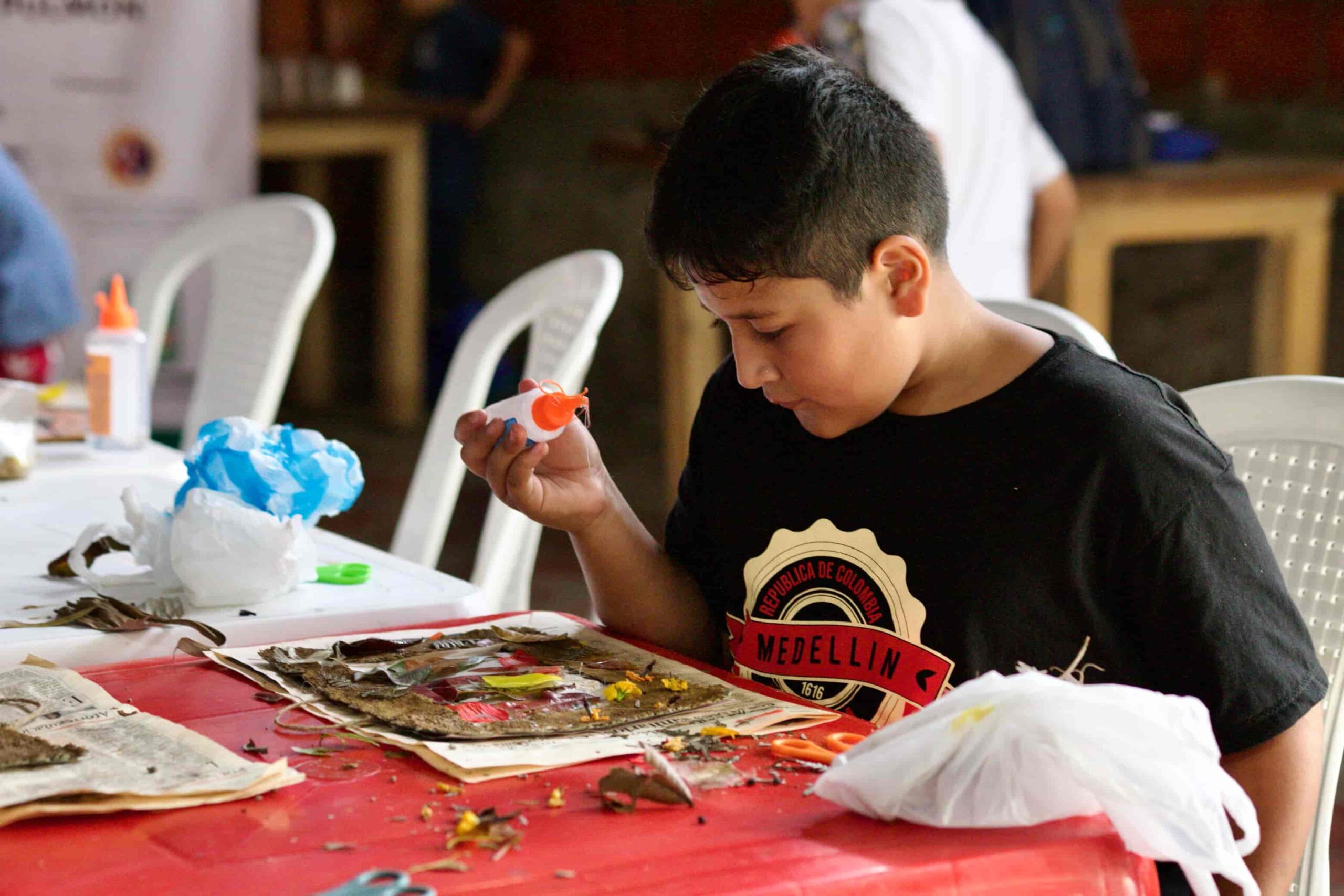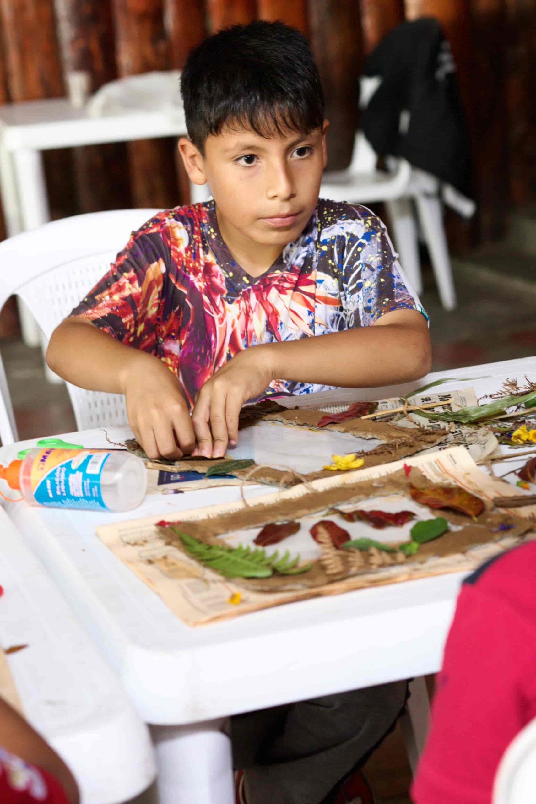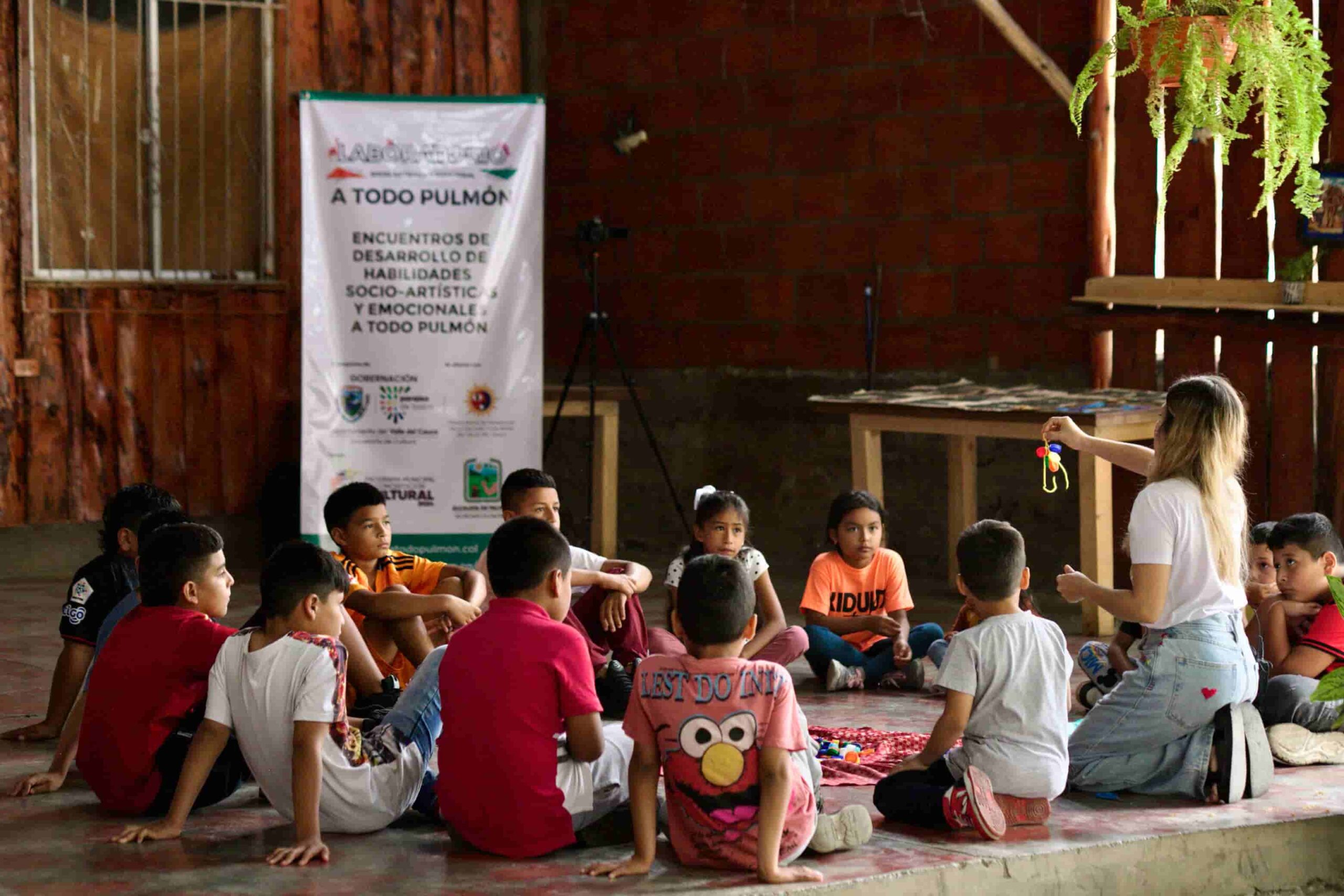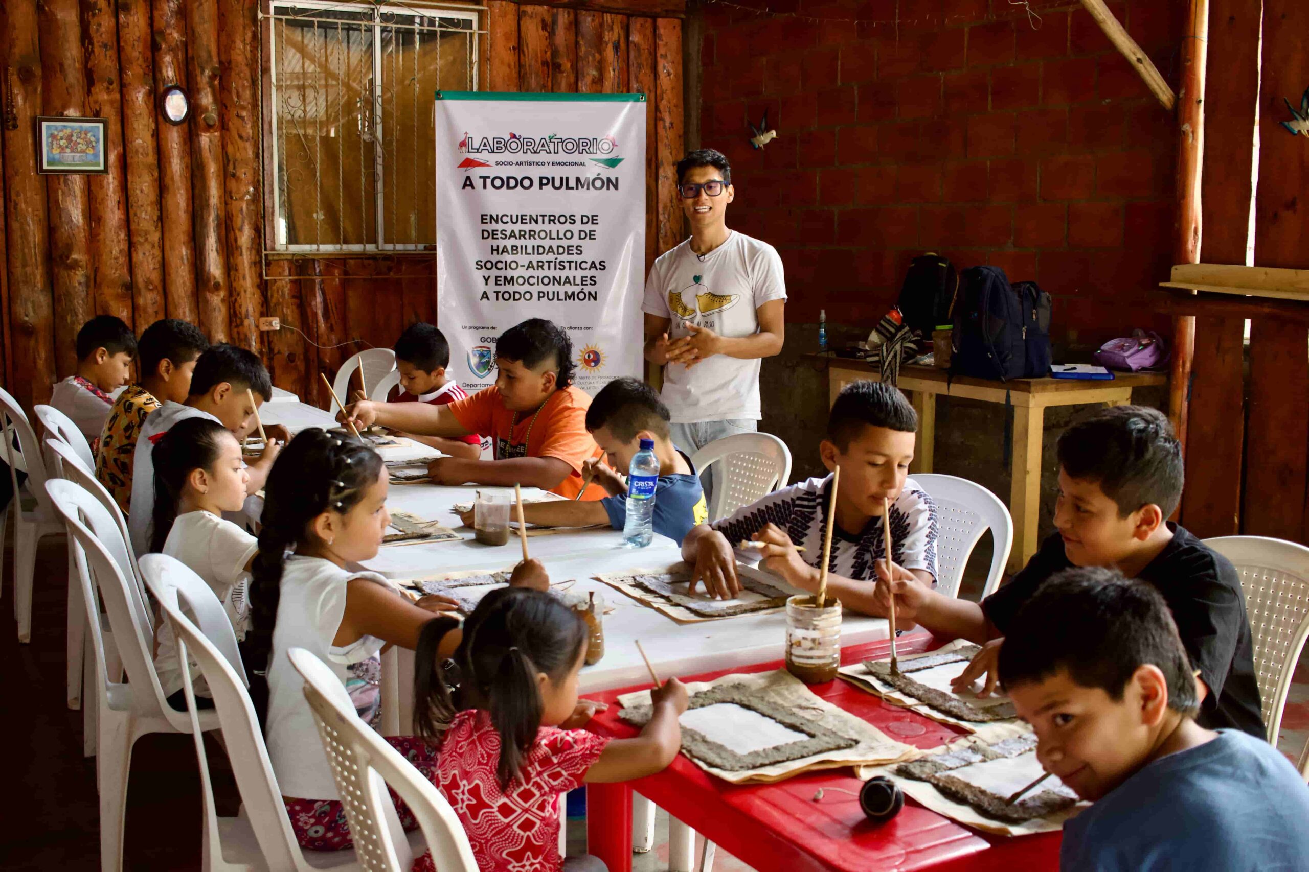 Los niños y niñas de la vereda Arenillo, corregimiento Ayacucho, recorrieron y reconocieron su territorio a través de la flora en el Laboratorio socio-artístico A Todo Pulmón mientras potenciaron sus habilidades socio-emocionales y artísticas en la música, la escritura, el dibujo y la escultura.